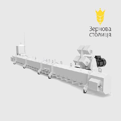 Скребковий зачистний конвеєр призначений для зачищення залишків зернової маси після розвантаження силосів на бетонній (пласкій) основі діаметром від 16 до 30 метрів. Складається з зачистного скребкового конвеєра, розташованого в коробі, що приводиться в рух мотор-редуктором.